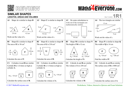 Similarity GCSE Covers similar shapes scale factors for area and volume and changing between units of area and volume. Area of similar figures worksheet Level 6-7 The first step for any similar shape question will often be to find the scale factor. Find the ratio of surface areas and volumes.